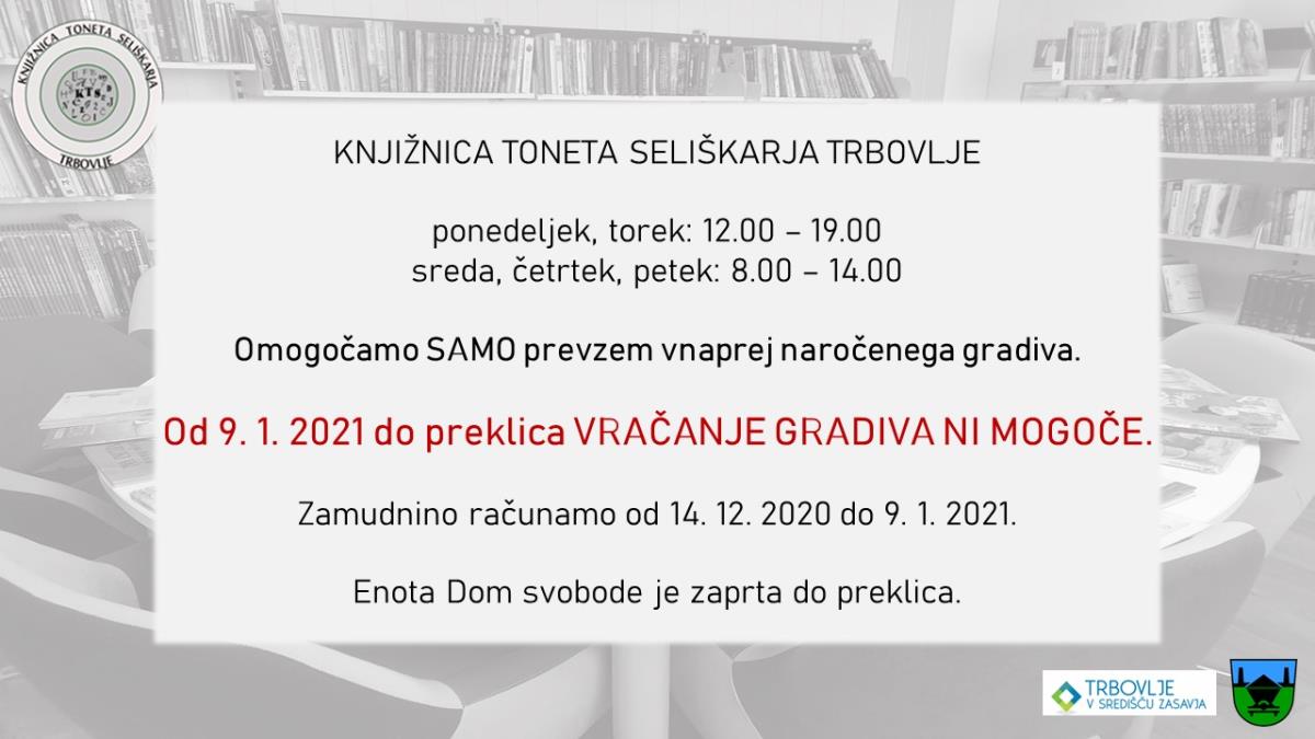 Obvestilo Knjižnice Toneta Seliškarja Trbovlje