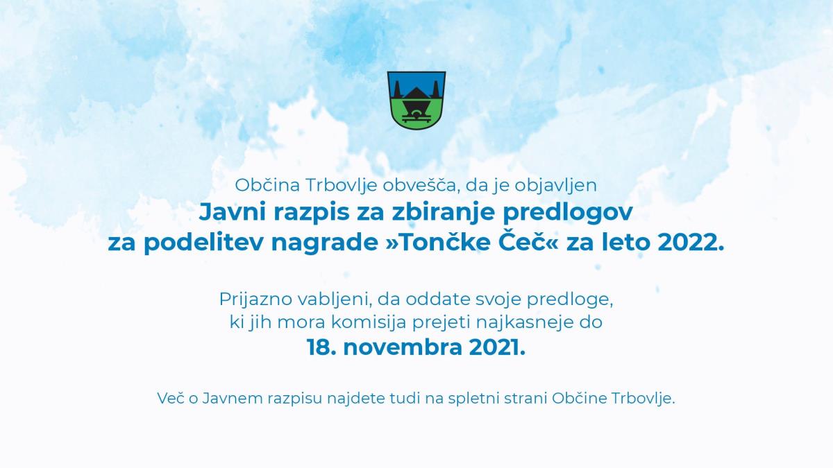 Javni razpis za zbiranje predlogov za podelitev nagrade »Tončke Čeč«