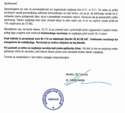 ZD Trbovlje obvešča, da v tem tednu testiranja na Covid-19 potekajo še po starem PON., SRE., PET. dodana pa je že nedelja, od prihodnjega tedna dalje pa TOR., ČET., NED.