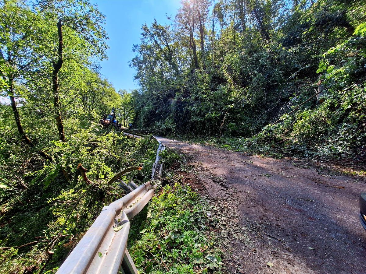 Trboveljski gasilci so v slabih štirih urah posredovali na sedmih intervencijah. Črpali so vodo, prekrivali strehe in omogočili, da so bile ceste čim prej prevozne. Največ škode je vetrolom povzročil na cesti proti Dobovcu, kjer so polomljena drevesa zaprla lokalno cesto, neurje pa je odtrgalo del ceste. Polomljena in potencialno nevarna drevesa odstranjujemo še danes. Cesta sicer je prevozna, vendar pa zaradi del prihaja do občasnih popolnih zapor. Strokovne službe občine so že opravile ogled poškodovanega dela ceste, v naslednjih dneh si bodo cesto ogledali tudi geologi in ostali strokovnjaki, nato pa bomo sprejeli odločitev na kakšen način bomo cestni odsek sanirali.